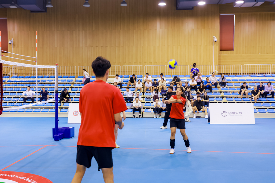 在当天的表演赛上,这些独特规则化作了一幕幕精彩瞬间。中国和球启梦队的国家级教练与队员们内部对决,教练一记精准的脚发球穿过“风流眼”,引得现场欢呼;队员间默契配合,男队员跃起拦网,女队员则用脚背轻巧颠球,完成“二次非上肢击球”后巧妙得分。比赛间隙,观众垫球挑战、实时比分竞猜等互动环节轮番上演。赛后,中国和球启梦队 队员分享比赛心得,解答观众疑问,更邀请观众组队上场实战,许多观众直呼,“原来和球这么有意思!”